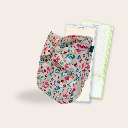 Kit fralda Ecológica Fraldadinhos Framingos com 2 absorventes Toalha de 4 e 6 camadas