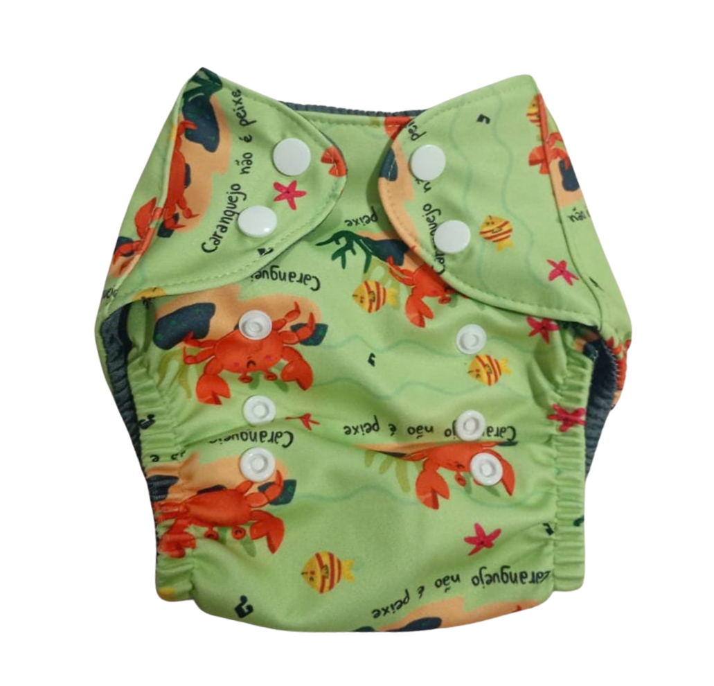 - O tecido externo das fraldas (parte estampada) é feito com tecido PUL de alta qualidade, 100% poliéster, super leve e maleável, que  dá ao bebê a sensação de estar usando uma roupa.