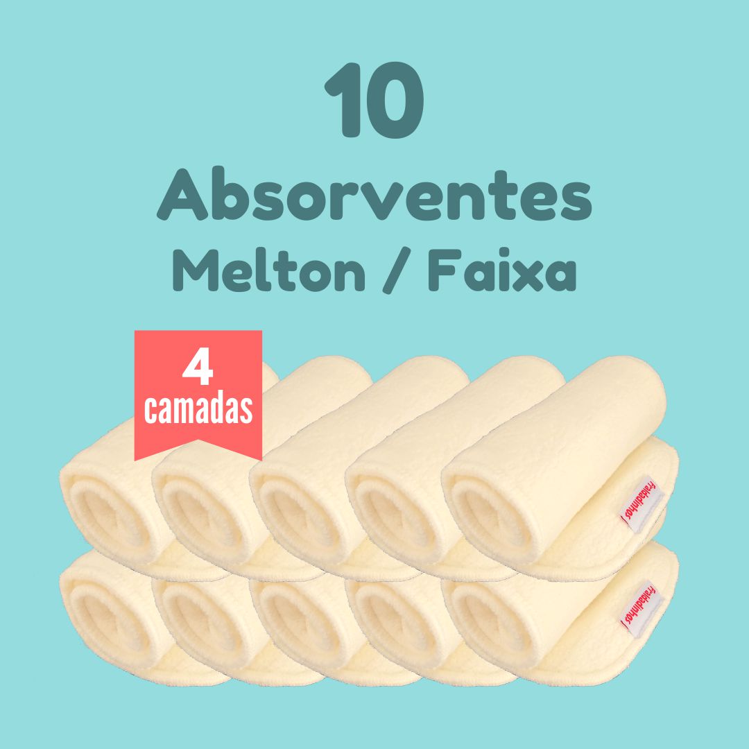 Kit com 10 absorventes para fralda ecológica - Melton - 4 camadas - Faixa