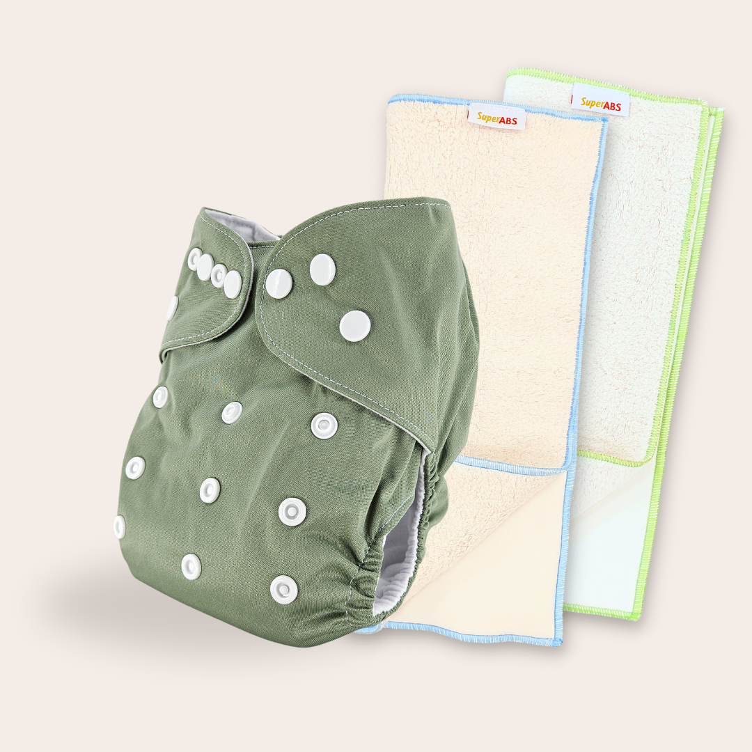 Kit fralda Ecológica Oliva com 2 absorventes SuperABS de 4 e 6 camadas
