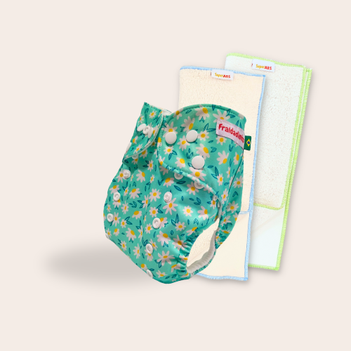 Kit fralda Ecológica Fraldadinhos Margarida com 2 absorventes Toalha de 4 e 6 camadas